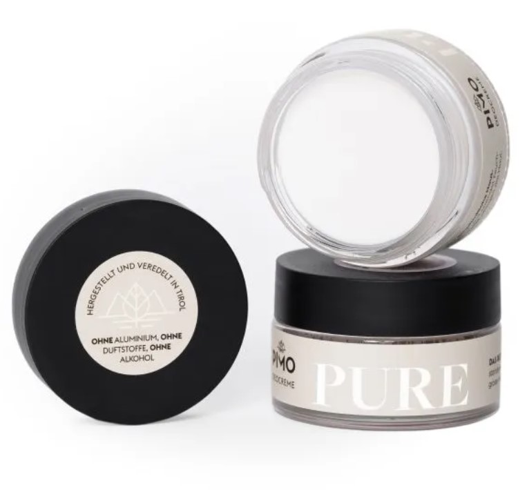 PIMO produziert zu 100% in Tirol von höchster Qualität aus dem, was die Natur an Zauberstoffen auffährt. Ohne Kompromisse. PIMO steht stellvertretend für vieles: Passion, Perfektion, Innovation, Inspiration, Mutter Natur, Originalität. Die festen Seifen werden zu 100% in Handarbeit mit wertvollen Ölen und ausgewählten Düften und Kräutern hergestellt. Die Deo-Creme verzichtet komplett auf Palmöl, Alkohol, Aluminium, SLS und allen anderen Schnickschnack.